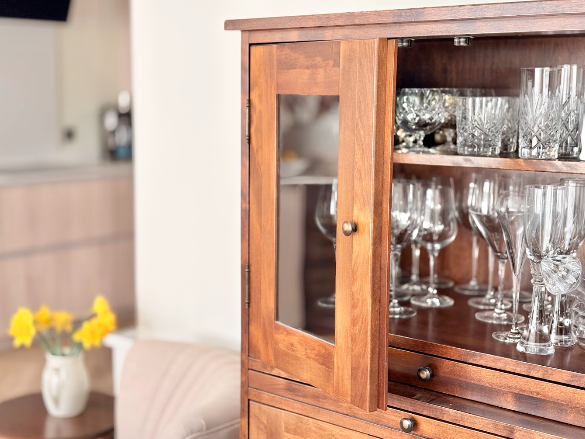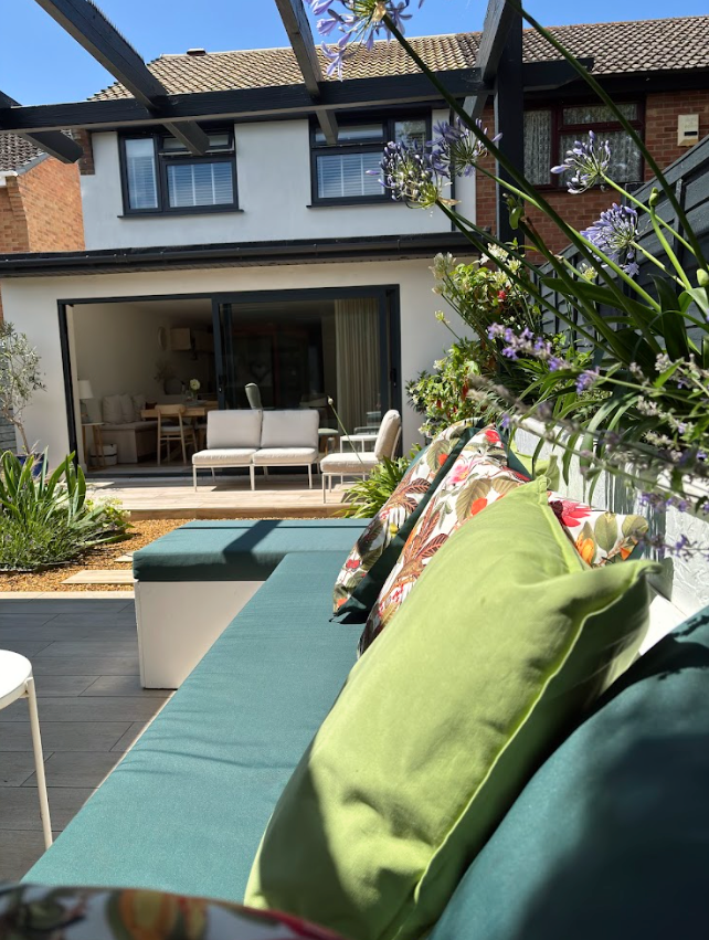 Outside, there is a private area ideal for morning coffee or relaxed evening meals, along with a charming garden cabin complete with a TV, perfect for unwinding with a film, enjoying a quiet reading nook, or taking time for yoga, stretching, or mindful downtime.